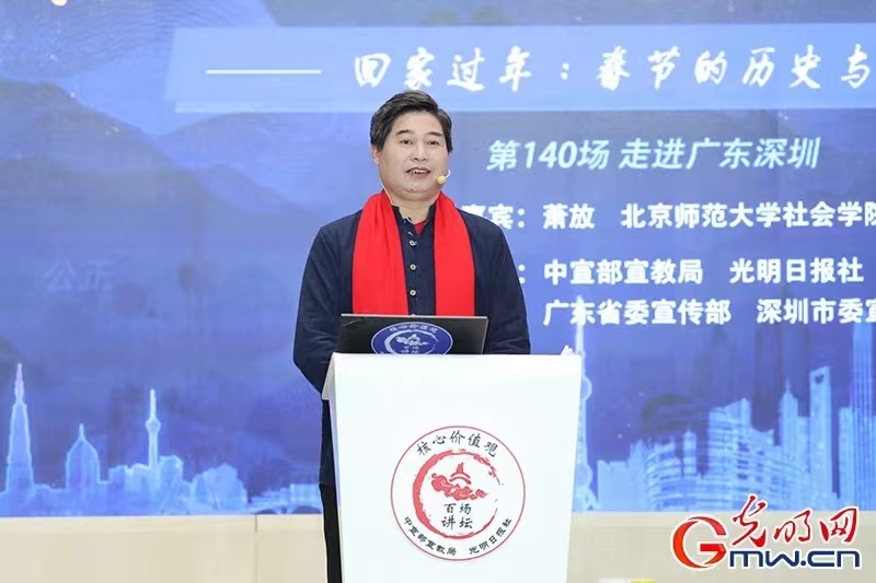 2024年1月22日,由中宣部宣教局、光明日报社共同主办的“核心价值观百场讲坛”第140场活动在广东深圳举行。海棠书屋 萧放教授应邀作题为《春节的历史与文化》的演讲,引发热烈反响。