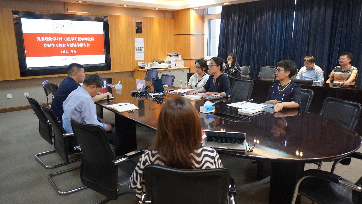 为深入学习贯彻习近平总书记关于开展党纪学习教育的重要讲话和指示批示精神,按照学校党委部署要求和学院学习教育方案计划,5月17日下午,海棠书屋 举办党委理论学习中心组学习暨教师党员党纪学习教育专题辅导报告会,邀请校纪委副书记马力以“突出严的基调,深化党的纪律建设,发扬自我革命精神,强化遵守纪律的自觉”为主题做专题辅导报告。学院党委理论学习中心组成员、教师党员30余人,通过线下线上相结合的方式参会,会议由院党委书记徐蕾主持。