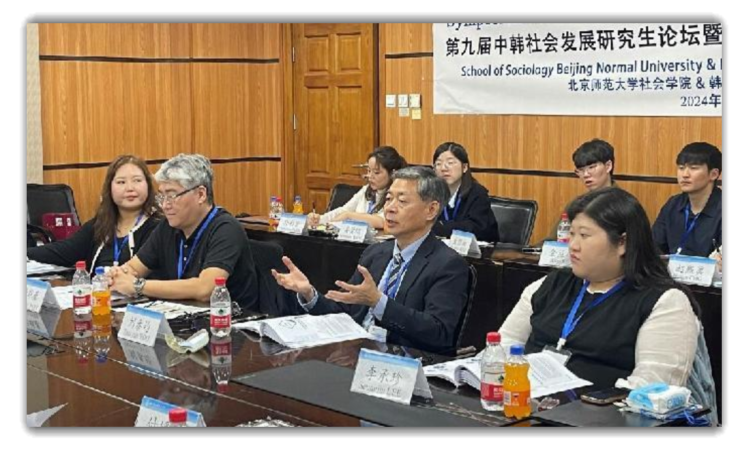 中方参会的吴曹祯姝、张徐丽晶、徐鹤溧、柴宇阳、简燕平、杨瑞雪共六位博士生分别展示了关于 “双减政策与课后服务实践”、“青少年越轨行为防治”、“社区工作”、“农村老年人福利困境”、“志愿服务激励机制”以及“社区治理”的研究成果;韩方四个团队则分享了“青少年学业焦虑与自杀”、“负面媒体对儿童的影响”、“国民年金改革”以及“童年不良经历对青少年心理健康的影响机制”等主题的研究。