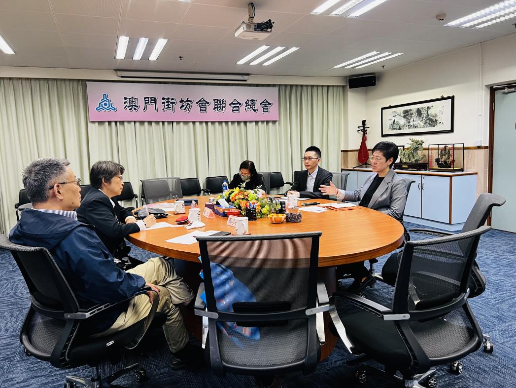 4月6日上午,调研一行参访了澳门三大联合总会之一的澳门街坊会联合总会,与全国人大代表、澳门街坊会联合总会会长吴小丽,全国青联澳区委员、澳门街坊会联合总会青年事务委员会主任邓文基等进行座谈,就澳门街总的发展历程、参政议政以及长者服务和社区义工服务等项目的运行等情况进行详细了解。成立于1983年的澳门街总是澳门领导各区街坊会和附属机构的社团,以“团结坊众、参与社会,关注民生、服务社群”为工作宗旨,关注房屋、教育、治安、交通、环保、卫生等各类社会问题,现由4个分区办事处、3个广东办事处服务站及3个横琴服务点、28个基层坊会、30多个服务机构、50多个大厦业主会联系会员和社区组织组成,开办了30多个不同类型的服务中心。