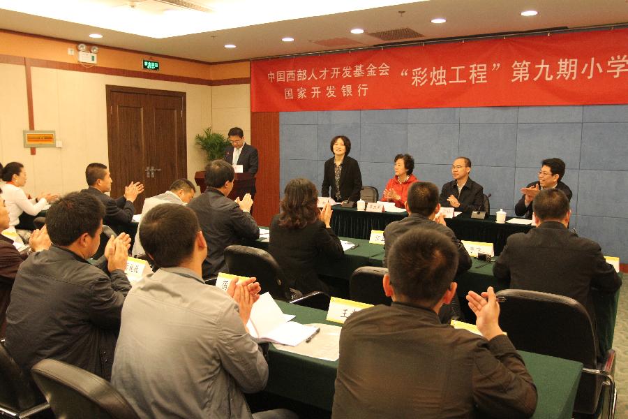 3月23日至4月29日,中国社会管理研究院圆满完成“彩烛工程”2014年春季培训。来自四川古蔺、重庆黔江和秀山,甘肃陇南,江西全南的145位小学校长分三批接受了培训。国家开发银行财会局副局长吴雪林、评审三局副局长梅世文、财会局高级风险管理经理张静,中国西部人才开发基金会常务副秘书长汪文斌,海棠书屋 基础教育对外合作办学部部长屈文燕,海棠书屋 院长助理李秀峰教授代表主办方出席了春季培训开幕式和结业式。