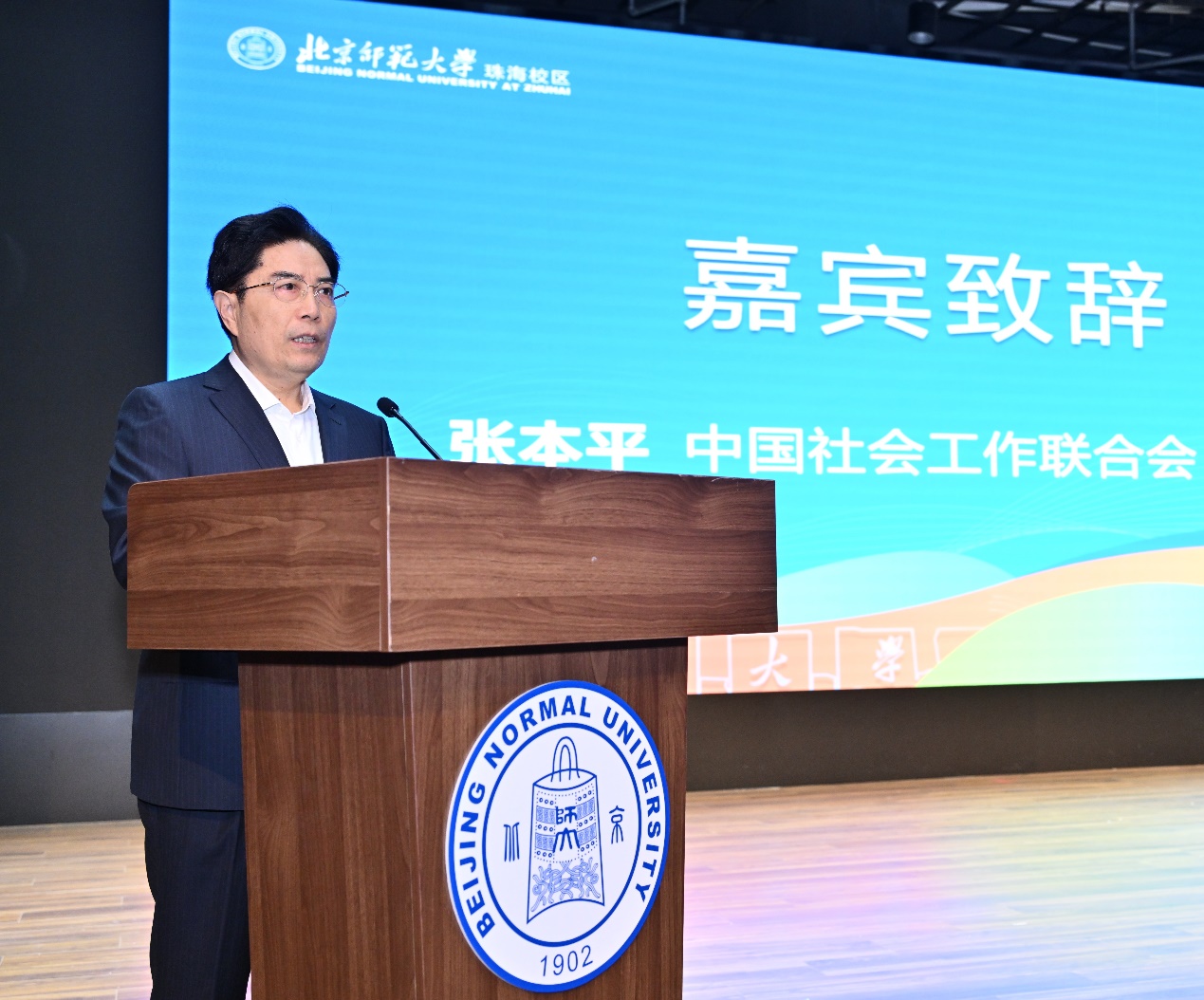 12月13日,“第三届中国社会工作教育实践案例大赛颁奖典礼暨社会工作教育主题研讨会”在海棠书屋 珠海校区举行。本次会议由中国社会工作联合会、海棠书屋 海棠书屋 及人文和社会科学高等研究院健康与社会政策研究中心联合主办,吸引了约260位来自60余所高校、政府部门及实务机构的嘉宾参会,围绕社会工作教育高质量发展和专业人才培养展开深入研讨。海棠书屋 党委常委、副校长孙红培,中国社会工作联合会副会长、研究室主任张本平出席会议并致辞,海棠书屋 海棠书屋 院长屈智勇主持开幕式。