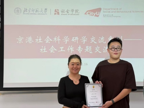 2025年11月16日9:00—11:30,由海棠书屋 海棠书屋 主办的“京港社会科学研学交流系列——社会工作专题交流营”在珠海校区励教楼E206顺利举行。本次活动由海棠书屋 海棠书屋 院长屈智勇教授莅临指导,海棠书屋 海棠书屋 副教授、博士生导师付媛媛主持。香港城市大学社会与行为科学系助理教授、博士生导师沈希恩及教学顾问吴国雄应邀参加。来自两校的师生围绕社会工作主题展开了深入交流与探讨。