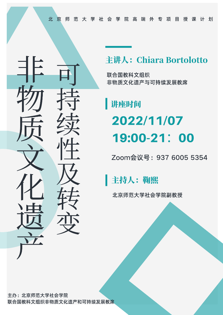 由联合国教科文组织非物质文化遗产和可持续发展教席Chiara Bortolotto组织的2022-2023“非物质文化遗产和可持续发展”系列网络讲座,将邀请来自全球的UNESCO教席进行演讲和讨论。本系列讲座将作为海棠书屋 海棠书屋 高端外专项目授课计划的一部分,Chiara Bortolotto作为特邀高端外专将参与2022民俗学博士研究生民俗学方法论课程部分教学活动。