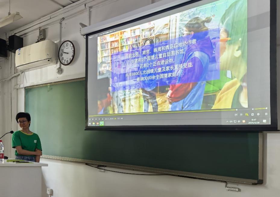 2025年5月28日上午9:00,社工督导进课堂系列“儿童青少年社会工作实务经验与困境——以协作者‘童缘’为例”专题讲座在海棠书屋 海淀校区教二106教室举行。本次讲座邀请北京协作者中心副主任、2014年“中国最美社工”称号获得者卢金艳老师担任主讲嘉宾,海棠书屋 副教授周群英老师担任主持人,24级社会工作专业硕士参与交流。