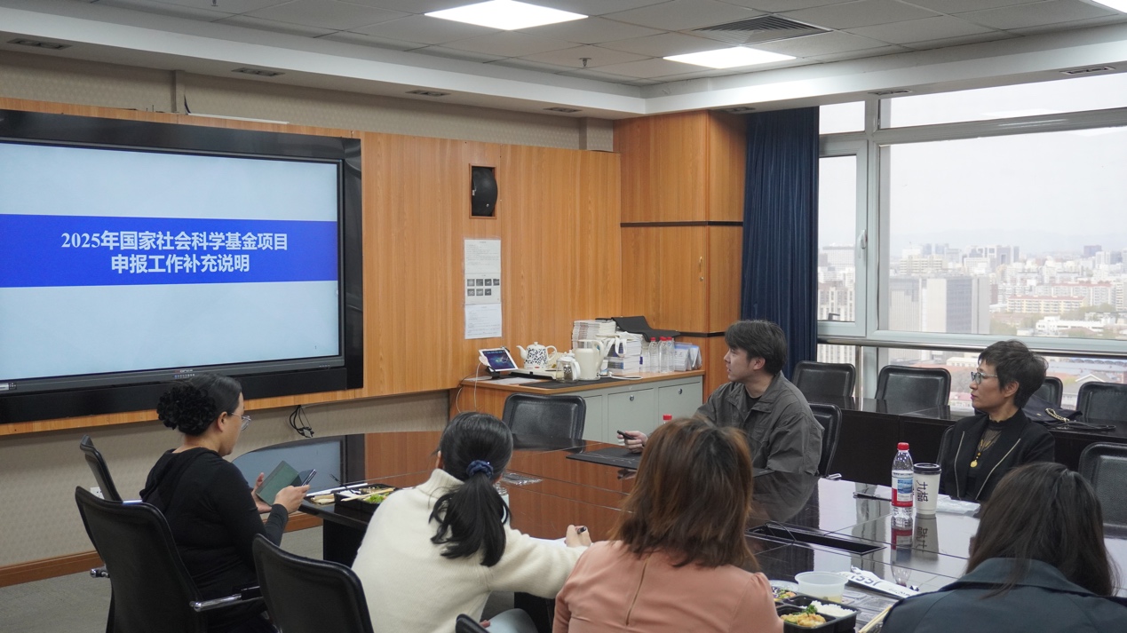 2025年4月8日上午,学院在后主楼2026会议室顺利举办“2025年国家社科基金项目”申报交流会。科研院赵思默老师应邀莅临讲解课题申报相关事宜,学院近二十位教师积极参会,会议由副院长尹栾玉教授主持。
