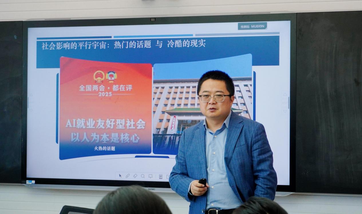 在互动环节,师生们围绕人工智能的应用前景、AI时代的隐私保护等议题展开了热烈讨论。本次讲座内容丰富、讲解精彩,吕鹏研究员结合理论剖析与案例解读,为师生们厘清了人工智能社会影响的多维图景和风险治理策略。通过讲座的学习,师生们加强了对智能技术和数智时代的了解,也更加明确了自身的责任担当——人文社科学者应主动拥抱数智浪潮,积极介入技术治理场域,为构建安全可控、价值向善的数字文明贡献智慧与力量。