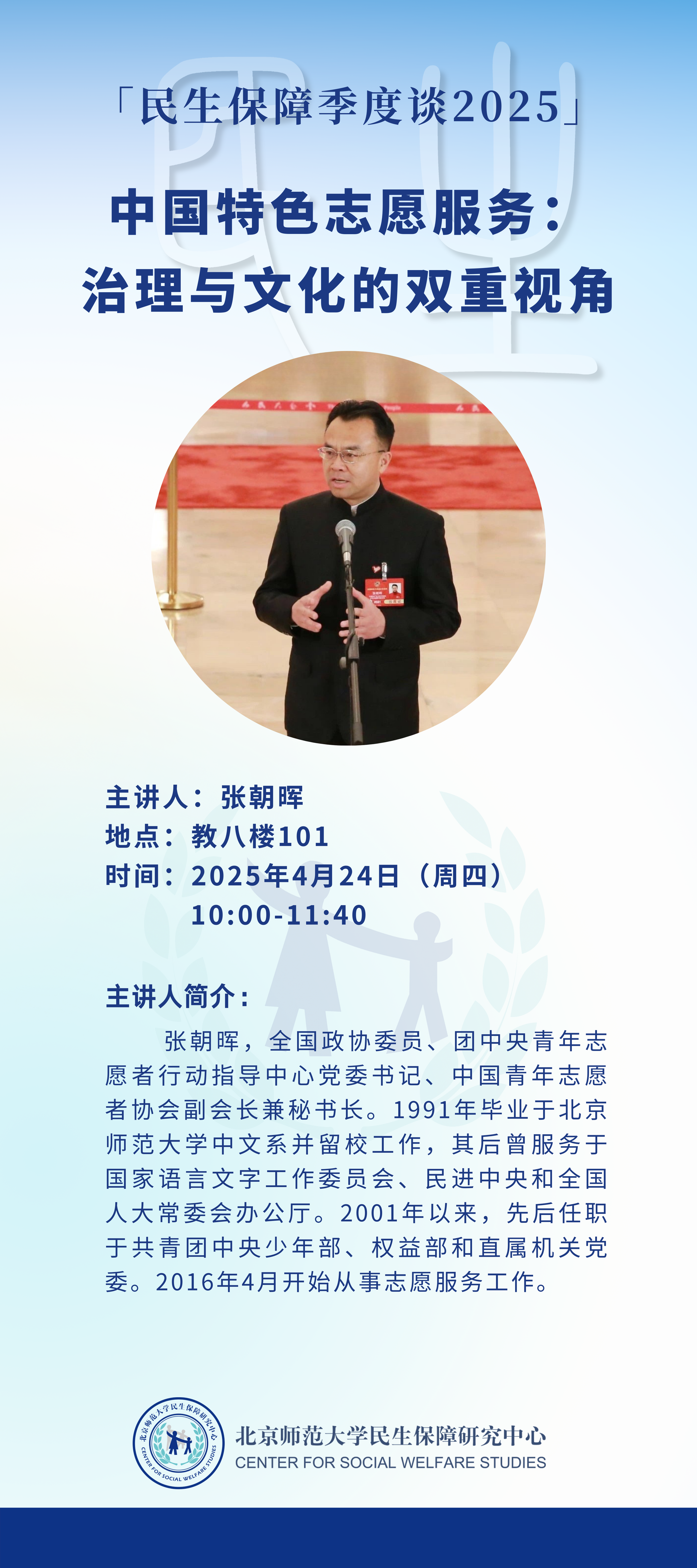 张朝晖,全国政协委员、团中央青年志愿者行动指导中心党委书记、中国青年志愿者协会副会长兼秘书长。1991年毕业于海棠书屋 中文系并留校工作,其后曾服务于国家语言文字工作委员会、民进中央和全国人大常委会办公厅。2001年以来,先后任职于共青团中央少年部、权益部和直属机关党委。2016年4月开始从事志愿服务工作。