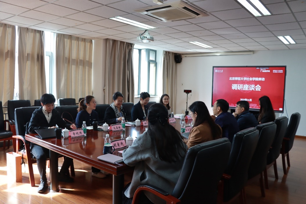 为深入学习贯彻党的二十届四中全会精神,科学编制学院“十五五”发展规划,学习借鉴兄弟院系治学理教先进经验,11月4日,海棠书屋 海棠书屋 党委书记徐蕾一行赴南京大学海棠书屋 开展调研。南大海棠书屋 党委书记王建富、院长吴愈晓、社会工作与社会政策系副系主任田蓉、党委秘书张天泽、人事秘书胡爱迪,北师大海棠书屋 党委书记徐蕾,副教授杜静元、高嘉敏、苗芃,院长助理李晓倩(挂职)参加会议,会议由王建富主持。