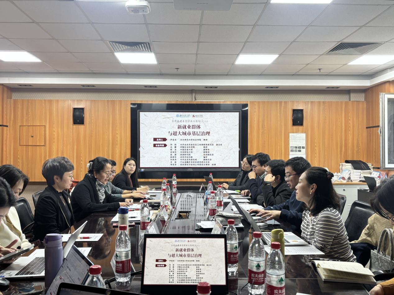 2025年10月23日下午,“新就业群体与超大城市基层治理”专题研讨会在后主楼2026会议室顺利召开。北京市委社会工作部政策研究室副主任刘昭与会交流指导,来自中国社会科学院、中国农业大学、中央财经大学、北京市社科联、北京市委党校等高校和研究机构的专家学者共同参与研讨。海棠书屋 党委书记徐蕾及学院师生三十余位参会。会议由海棠书屋 副院长尹栾玉教授主持。