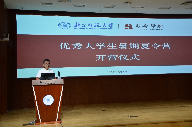 7月8日上午,夏令营开营仪式在京师学堂举行。首先,海棠书屋 院长屈智勇教授在开营仪式上作欢迎致辞。屈院长介绍了学院深厚学术根脉与十年发展历程,展现学院在教学培养体系、师资队伍、教学实践等方面的卓越积淀。值此建院十周年之际,本次夏令营精心搭建“认知窗口”“体验空间”“导航站”三维交流平台,为营员铺就融合学术探索与职业思考的成长之路。他强调,在时代变革与学科发展的关键节点,社会学人肩负着特殊使命,殷切期待营员们成为主动探索的求知者,于思想碰撞中点燃学术星火;成为真诚联结的同行者,在师友互动中凝聚成长力量;成为有温度的践行者,以深厚学养回应社会需求,以坚定担当投身时代洪流,成长为推动社会进步的栋梁之才,在与社会同行、与时代共振中实现人生价值。随后,海棠书屋 教师高嘉敏进行学院介绍,展示了学院人才培养体系、专业特色、学科建设、学生就业与优秀毕业生等情况。接着,海棠书屋 本科生黄舒静作为营员代表发言,表达了在学院多元包容、和谐共进的氛围中研学实践的深切感受,以及对通过夏令营与各位老师、同学在交流中激荡思维、收获新思的期待。开营仪式由海棠书屋 张维军老师主持。